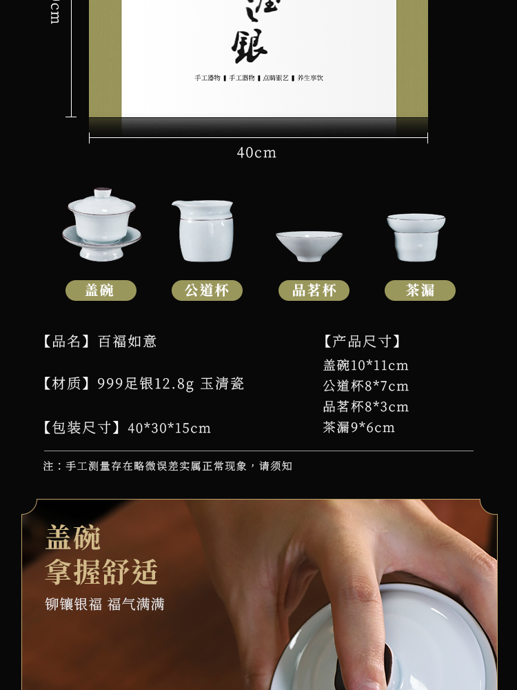 | Product accessories | Teacups*6, tea strainer*1, Fairness cup*1, Lidded bowl + lidded bowl holder*1, Lid holder*1, Quality inspection certificate*1, Packaging box*1, Handbag*1 |